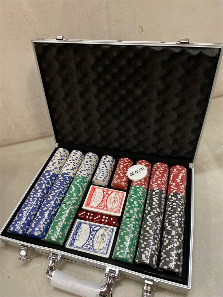 Perfect Poker Chip Set We care more about product quality and user experience than price, which is why we have launched this cost-effective new version of the poker set for 2022.The new set thickens the lining, increases the firmness of the aluminum case, and replaces the thin handle to make it more durable. Premium poker chips The chip is a masterly double injection molding, iron core that weighs 11.5 grams and feels round and heavy, giving the weight and feel of a true casino-quality clay poker chip.988 standard decks of cards belong to the high-end level, with a certain waterproof function, full toughness, feel silky. Sturdy carrying case A well-made aluminum carrying case, 15.4in*11in*2.5in, durable and easy to carry, the included tray inserts are covered in a black velour fabric that resists dust, keeping each piece in this set bright and new.suitable for home and travel, indoor and outdoor environments. Classic poker set Classic Poker sets are perfect for 8 to 10 players for Texas Hold 'em, blackjack, tournaments, card clubs, and more.It is the perfect choice for birthday, Christmas and other holidays for people of all ages. Product details Includes 500 casino-sized 39mm diameter chips ,in the following colors: 100 bule,100 white, 100 red, 100 green, 100 black. 2 standard decks of cards 5 dices and 1 dealer.We do not provide small blind and big blind button.