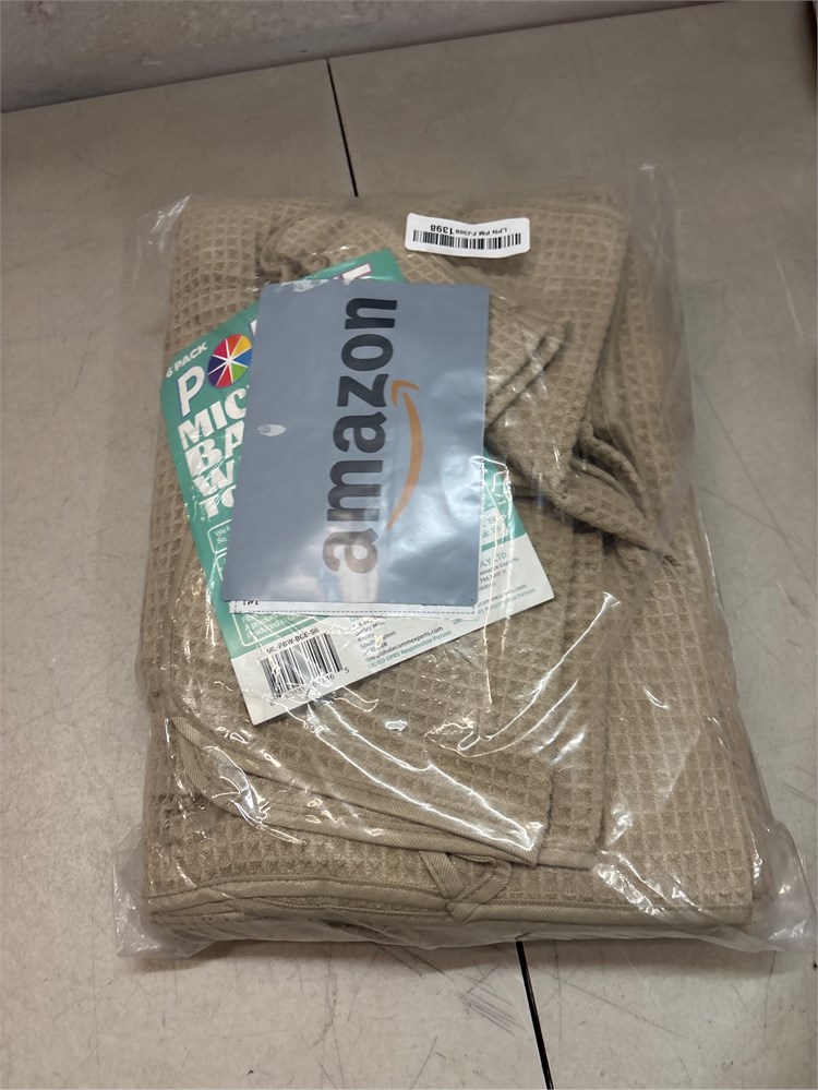 85% Polyester, 15% Polyamide Experience the super soft feeling of premium microfiber bath towels against your skin without the heft and bulk; unlike traditional towels you simply pat yourself dry not wipe; OEKO-TEX Standard 100 Microfiber thoroughly dries faster and gentler than traditional fibers; waffle weave feels smoother on your skin and is less likely to collect lint or debris Face and Hand towels have loop for hanging, body towel has sewn in label; towels will quickly dry when hanging to help prevent the formation of odors; folds into a compact size to be used in the bathroom, kitchen, on travel, at the pool, camping, gym or anywhere else Larger Size: bath-30 x 60 in., hand-16 x 30 in., face-13 x 13 in.; same superior material as our 60 x 30 in, Set of 2 Waffle Weave Bath Towels but thicker Deluxe weight class >400 gsm; top layer of fibers has slightly loose construct; necessary characteristic for much higher weight/gsm waffle weave microfiber; please do not wash with items that have hardware that can catch and pull the threads.