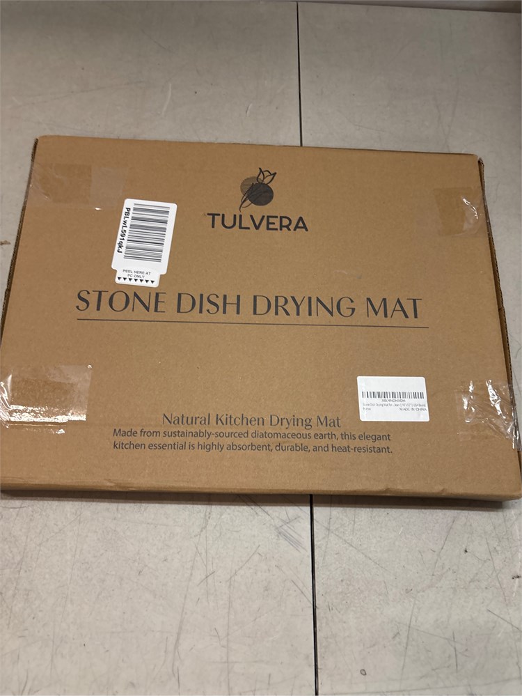 ARTISANAL STONE DISH DRYING MAT: Elevate your kitchen space with the Tulvera Stone Drying Mat, crafted from 100% natural, food grade diatomaceous earth. This elegant kitchen essential features a professionally engraved wave design, transforming your kitchen counter into a masterfully crafted space. INNOVATIVE MOISTURE ABSORPTION: The stone surface is naturally porous and absorbs moisture rapidly, drying within seconds and ensuring proper air flow. It s perfect for small dish racks, eliminating standing water and keeping your countertops clean and dry. EFFORTLESS MAINTENANCE: Simply rinse with water and wipe clean with a sponge or cloth. For tougher stains, gently scrub with the included sanding tool.
