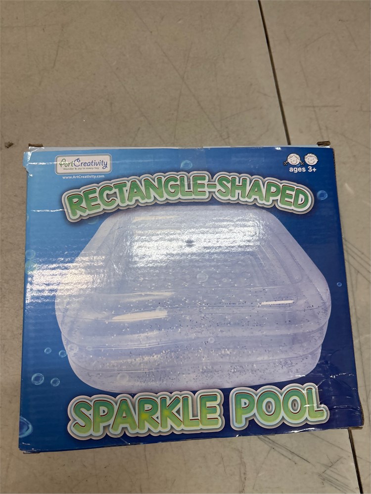 BEAT THE HEAT: When the sun comes out, make a splash! This inflatable pool measures 38 (W) x 10.5 (H) to suit little kids ages 3 and up. And with 3 levels, you ll always know just how high to fill it. THE COMPLIMENT-GETTER: A backyard pool you ll want to show off. No jarring colors here. Transparent, with chunky iridescent silver glitter inside, our splash pad captures the kids imagination while blending into your space. SPLASH IN COMFORT: This isn t just any outdoor pool.